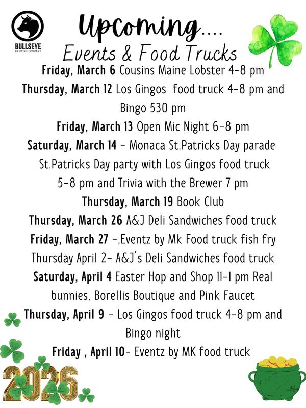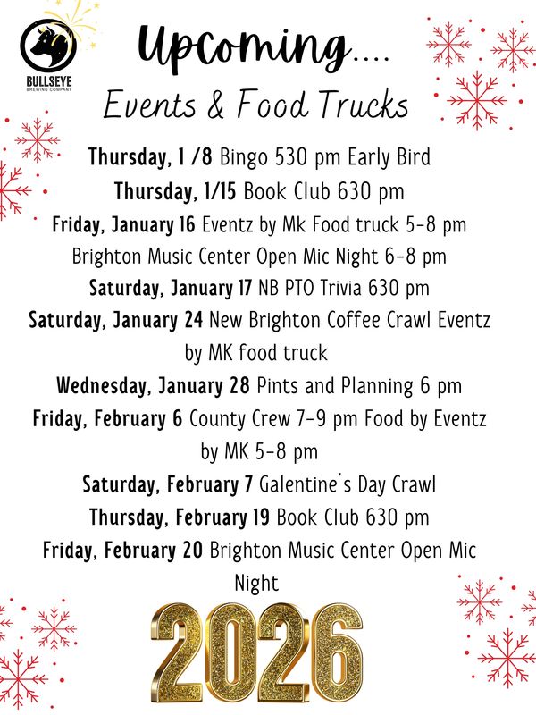 Bullseye Brewing Company is proud to bring Beaver County locally crafted beer made with high quality ingredients. We also serve Pennsylvania derived spirits. We are currently featuring McLaughlin Distillery, Big Springs Spirits, Arsenal Cider , Four Twelve Winery and Narcisi Winery